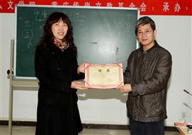 俞学明教授向张风雷教授颁发了中国政法大学宗教与法律研究中心讲座教授聘书。