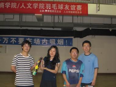 回想比赛的幕后,作为组织者的两院研究生会的同学们有条不紊地按计划安排赛程,从租场地到赛场布置,从组织裁判进行公正计分到最后公布成绩,处处是他(她)们的身影。正是他(她)们的辛苦工作,为这次别开生面的友谊赛的完满进行增色不少。选手们虽然没有对他(她)们说些什么,但在每一个享受这场比赛的选手们心里都充满了对他们的深深感激。