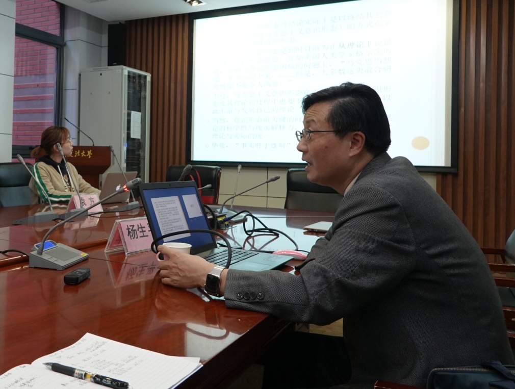 在文兵教授的主持下,杨生平教授在和与会师生简单而友好的介绍、交流中,引出自己对“意识形态终结”论研究的切入点,希望与大家共同研讨进步。